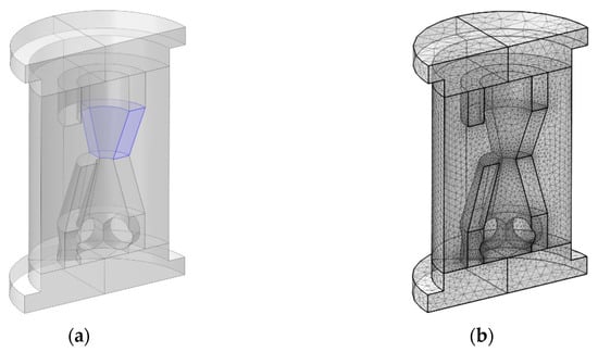 The system of Equations (1)–(6) was solved by the finite element method in the COMSOL Multiphysics software package.