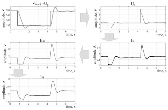 The waveforms recorded in response to a step change in the voltage regulator’s reference voltage Uref [22].