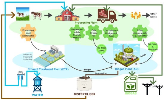 Anaerobic digestion is considered an effective and environmentally friendly technology that allows for the utilization of sewage sludge and the production of significant amounts of biogas which contains up to 75% methane []. Therefore, improving this technology contributes to implementing the assumptions of the closed-loop economy and, consequently, reducing the amount of waste generated. This process stabilizes sewage sludge, reduces pathogens, and produces biofuel with high potential for use as a renewable energy source. To improve the process, pre-treatment of sludge is increasingly used, which allows for enhanced methane production and efficiency of substrate decomposition in biodegradation processes (Figure 2). Moreover, this results in a reduction in solid mass [].