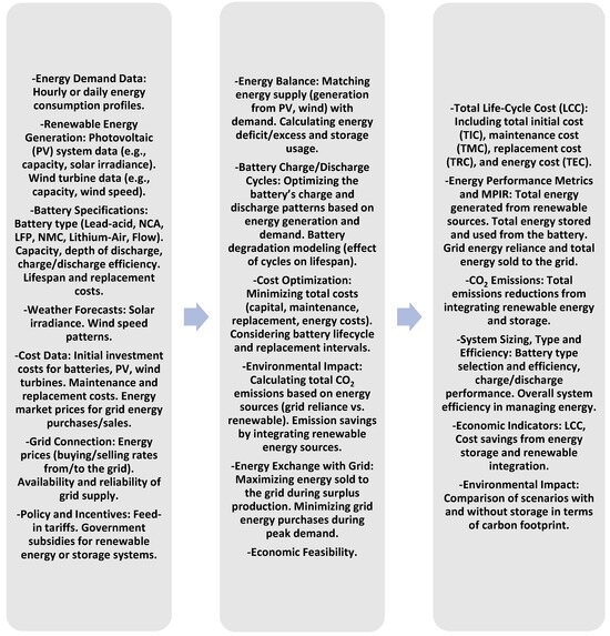 Microgrid optimization is a well-researched area, especially in the context of battery storage technologies, energy management, and cost efficiency. However, as can be read in the literature, existing tools and methods often focus on technical and economic aspects without fully considering social and environmental factors. This gap is particularly evident in existing optimization models, which tend to focus on either cost efficiency or technical performance, but not the holistic assessment required for sustainable microgrid systems. Several studies emphasize the dominance of lithium-ion batteries in energy storage solutions for microgrids, mainly due to their efficiency, long lifetime and ability to integrate with renewable energy systems. However, the challenge of cost efficiency remains. Studies show that cost reductions of 10% in Greece and 30% in Denmark are necessary for lithium-ion batteries to become a viable option for widespread adoption [22]. These findings highlight the need for tools that can help reconcile economic and environmental goals by assessing the broader implications of battery technology choices in microgrid configurations. Other research on energy storage optimization, such as swarm optimization for fuzzy logic control, demonstrates how technological advances can improve convenience and reliability for consumers [23]. Similarly, the implementation of maximum power point tracking (MPPT) techniques has led to remarkable improvements in microgrid performance, especially in self-sufficient communities that rely on renewable energy sources [24]. These studies illustrate the technical advances in optimizing power generation, but they fall short when it comes to evaluating the socio-economic and environmental trade-offs that investors and policy makers must consider in real-world microgrid projects. For example, studies on area reduction algorithms to minimize energy costs show that energy efficiency can be improved by more than 21% in certain applications [25], but these results often overlook the long-term sustainability of the system or its acceptance by the local community. In addition, simulations of battery storage show that low-energy homes can achieve significant savings, but the social and environmental aspects, such as community engagement and grid integration readiness, are often not considered [26]. The research landscape also highlights the need for comprehensive assessment frameworks. Conventional tools such as HOMER and RETScreen offer strong capabilities in economic and technical modeling, but their scope is limited when it comes to incorporating environmental and social metrics [27,28]. This limitation is critical as studies show that despite their high performance, lithium-ion batteries are associated with significant environmental impacts during production and their long-term sustainability remains an issue without deeper integration of life cycle assessments and stakeholder involvement in the decision-making process [28,29,30]. Another critical gap is the focus on the cost efficiency of battery storage solutions without fully considering the long-term financial sustainability and social acceptance of such technologies. For example, cost reductions of 60–70% are required for batteries to be a sustainable solution for energy storage in microgrids [31], yet few studies have considered how such cost reductions can be reconciled with community needs and environmental goals. Similarly, environmental assessments of energy systems show that the production of batteries, particularly lithium-ion batteries, contributes significantly to the overall carbon footprint [32,33] and yet conventional tools do not adequately account for these environmental impacts in their models. The development of optimization models, such as rolling two-stage optimization, has led to a 13.3% increase in energy efficiency and a 14.55% reduction in system costs [34], representing a significant advance in microgrid performance. However, these models often ignore important aspects, such as community involvement, environmental suitability, and alignment with regional policies, which are essential for the practical deployment of microgrids in different geographical and socio-economic contexts.
