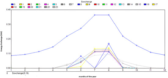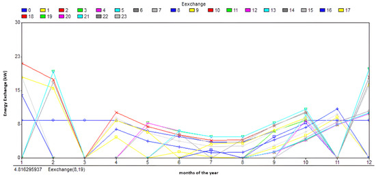 Energy exchange for each month and at any time for the case study A.1.g.