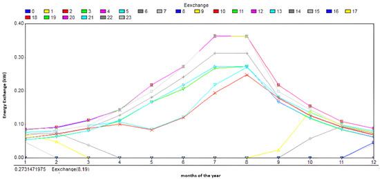 Energy exchange for each month and at any time for case study A.1.j.