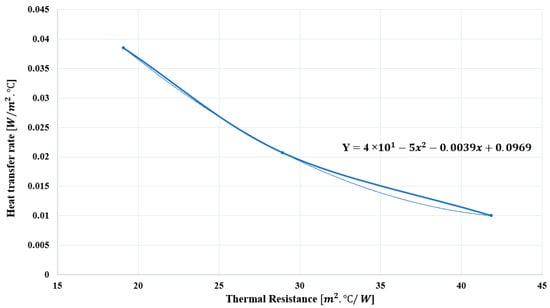 The pure backfill material’s thermal conductivity ranges from 0.8 W/m·K to 2.4 W/m·K [44]. Pure backfill materials that are commonly used include sand, clay, silt, quartz sand, cement, bentonite, and coarse/fine gravel. Each type of these materials has different thermal properties that are based on the characteristics of its physical components. For instance, Wang et al. [28] used the improved “de V-1” model to assess the thermal conductivity of various soil types, such as loam, clay, and sand. The results showed that sand had higher thermal conductivity and heat diffusion than loam and clay soils. Cao et al. [45] evaluated the thermal conductivity of organic soil, silt and clay, sand, and organic soil. Experimental results revealed that sand had a higher thermal conductivity than other compared materials. Furthermore, Wang et al. [28] agreed with Fujiao and Nowamooz [29] that sand outperformed clay. Cementitious and sand materials perform better than other pure materials regarding thermal characteristics and geological location [46,47]. Utilizing cement as the backfill material is preferred in dry soils due to its high desiccation and shrinkage rates, as stated by Lee et al. [48]. Moreover, Pahud and Matthey [49] concluded that filling the space between the pipe and the surrounding ground with quartz sand rather than bentonite could lower borehole thermal resistance by 30%. As thermal resistance increases, the heat transfer rate decreases, as shown in Figure 5.