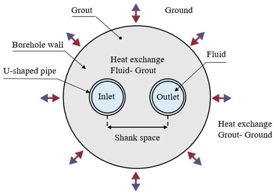 Shank space in a horizontal cross-section of a U-tube pipe in a vertical ground heat exchanger (GHE) [5].