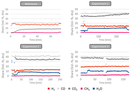2. A detailed view of the product gas composition for all experiments conducted is illustrated in