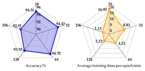 An appropriate batch size is crucial for the training of neural networks. Too small of a batch size may lead to excessively long training times and difficulty in achieving convergence, while too large of a batch size may result in a decline in the model’s generalization performance. Therefore, this paper conducts a detailed comparison of batch sizes, including 16, 32, 64, 128, and 256. The comparative results are illustrated in Figure 7.