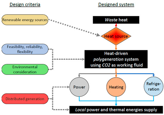 This paper addresses a small- and medium-scale polygeneration system with CO2 as the working fluid. A conceptual design is shown in Figure 2. The authors already discussed and evaluated the application of such a system in [15,16].