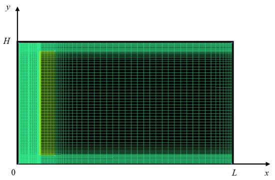 The structures shown in Section 2.1 were simulated in steady-state conditions during the winter season using the commercial software ANSYS 15.0. This software provides the tools necessary for the different phases of the numerical analysis: geometry description, mesh generation (ICEM), and solver (Fluent). The simulated structures had a 2D geometry, discretized with a structured mesh made of quadrangular elements. The growth ratio of the mesh was set at 1.1. Figure 5 shows the details of the mesh.