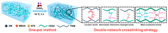 - Li, Z.L.; Zhou, G.Q.; Ye, L.; He, J.Y.; Xu, W.W.; Hong, S.; Chen, W.M.; Li, M.C.; Liu, C.Z.; Mei, C.T. High-energy and dendrite-free solid-state zinc metal battery enabled by a dual-network and water-confinement hydrogel electrolyte. Chem. Eng. J. 2023, 472, 144992. [Google Scholar] [CrossRef]