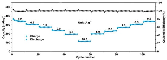Long-term cycling performance, with specific capacity on the left axis and Coulombic efficiency on the right axis, for ZIB with gelatin-based hydrogel electrolyte and MnO2 cathode at 2 A g−1. Figure slightly modified from [99] reprinted with permission.