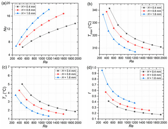 Performance of various MCHSs: (a) Nu; (b) Tmax; (c) Tσ; (d) f.