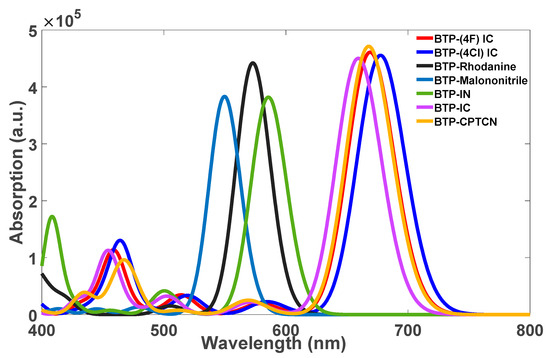 - Wen, G.; Hu, R.; Su, X.; Chen, Z.; Zhang, C.; Peng, J.; Zou, X.; He, X.; Dong, G.; Zhang, W. Excited-state properties of Y-series small molecule semiconductors. Dye. Pigment. 2021, 192, 109431. [Google Scholar] [CrossRef]