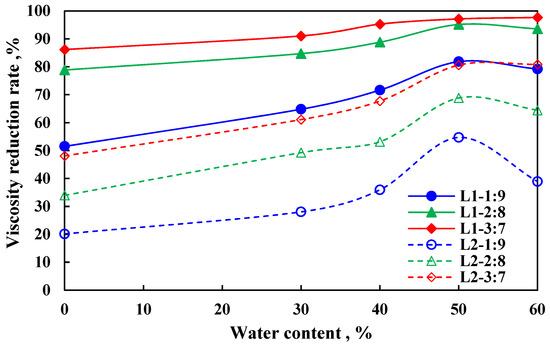The viscosity reduction rate of heavy oil emulsions (water content, 50%) by light oil L1.