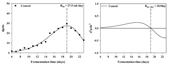 Analysis of maximum methane production rate and attainment day by the 1st and 2nd derivative from the cumulative methane production curve of control.