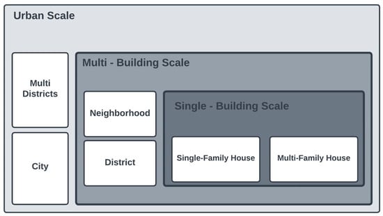 The system boundary in building energy management tools refers to the level of analysis and detail the tool provides. As a result, building energy management tools can operate at different system boundaries, ranging from individual building components to entire urban regions (Figure 2).