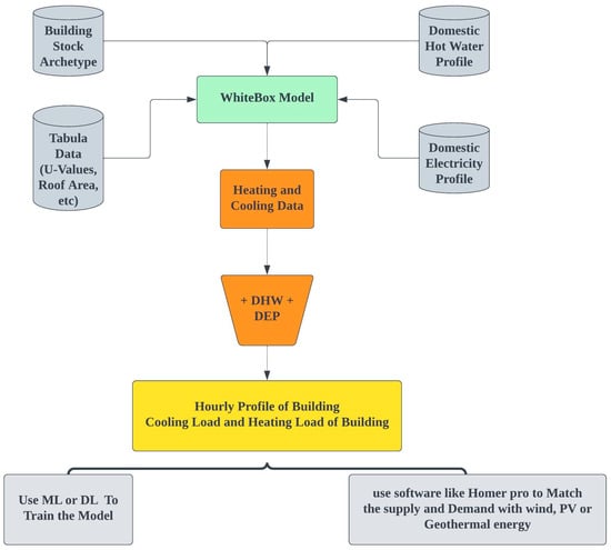 The white-box building models apply heat and mass balance equations, which dynamically describe building behaviour. These equations account for three heat transfer mechanisms (conduction, convection, and radiation) between the building envelope and its surroundings. Numerous commercial and open-source software options, including EnergyPlus, Dymola, TRNSYS, and DOE-2, are available for building energy modelling. These tools efficiently formulate and solve these equations, although manual calculation of cooling and heating loads may still be necessary [29]. The details for building thermal and cooling load prediction are presented in reference [30].