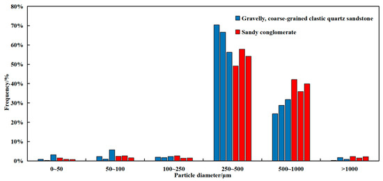 According to the quartz grain size frequency distribution graph, the grain size frequency distribution is basically consistent with the rock sample naming standard [36], which proves the accuracy and reliability of the result.