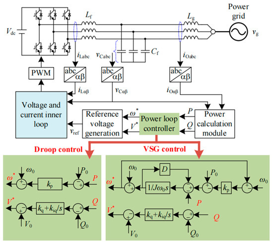 Lg). The controller generally consists of a power control loop, a capacitor voltage control loop, and an inductor current control loop. The most commonly used control methods for power loops include droop control and VSG control.