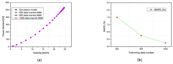 (a) Comparison instructed with 600, 800, 1000 data point using one power-velocity curve, (b) comparison MAPE with 600, 800, 1000 data point.