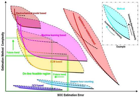 Estimation error and computational complexity for the common SOC estimation methods [16].