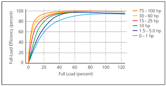 Motor load efficiencies for motors with different power [35].