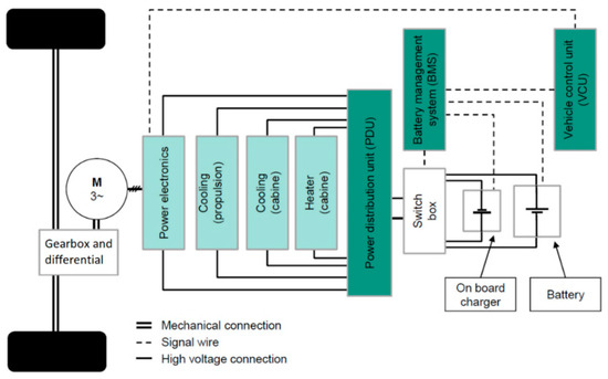 The topics of energy consumption (customer-driven) and emission reduction (politically driven) are two essential goals for automotive development [1]. In addition, practical solutions for major challenges of trip-level management need to be provided. Thus, the electrification of commercial, public, and freight delivery vehicles has become essential [2,3]. Electric vehicles (EVs) have been widely adopted in recent years due to the growing attention regarding implementing environmentally friendly energy sources and energy conservation issues [4]. The most popular technologies that have adopted electrical powertrains are hybrid electric vehicles (HEVs), plug-in hybrid electric vehicles (PHEVs), battery electric vehicles (BEVs), and fuel cell electric vehicles (FCEVs) [5].