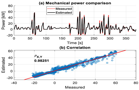 The correlation between the measured and estimated VUT powertrain’s mechanical power during the field maneuver test.
