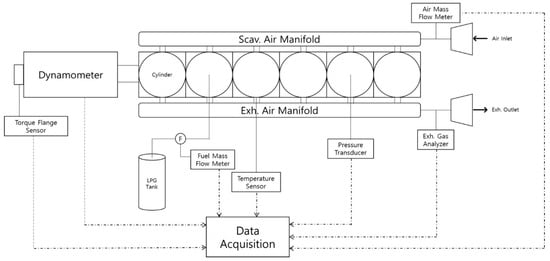 Various measurement instruments were employed to gather operational data from the experimental LPG engine to facilitate the measurement and analysis of its characteristics, performance, and exhaust gas emissions. Figure 1 illustrates a block diagram of the installed experimental measurement instruments.