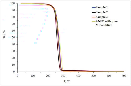- Biessikirski, A.; Gotovac Atlagić, S.; Pytlik, M.; Kuterasiński, Ł.; Dworzak, M.; Twardosz, M.; Nowak-Senderowska, D.; Napruszewska, B.D. The Influence of Microstructured Charcoal Additive on ANFO’s Properties. Energies 2021, 14, 4354. [Google Scholar] [CrossRef]