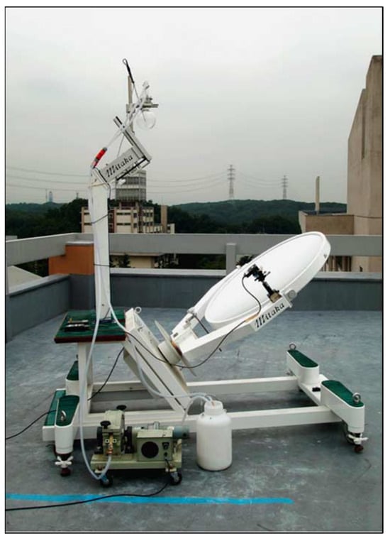 Due to the high efficiency and compactness of PDR technology in concentrating solar energy, unique PDR-based photoreactors have also been explored. Oyama et al. presented a batch-mode photoreactor system aiming to achieve the photocatalytic degradation of commercial detergent under real sunlight (as shown in Figure 5) [82]. The system consisted of a round concave mirror (parabolic dish reflector) with an aperture diameter of 1.0 m and a flask-type reaction vessel. The parabolic dish reflector employed could achieve a geometric concentration ratio of 70 suns. The reaction vessel was mounted at the focal point of the parabolic dish for adsorbing the incident solar energy. TiO2, as the photocatalyst, was used in suspension and flowed inside the system circulation loop. The photocatalytic degradation of the refractory detergent driven by concentrated sunlight exhibited a much higher treatment efficiency than conventional biodegradation.