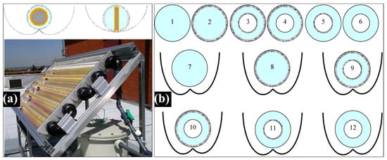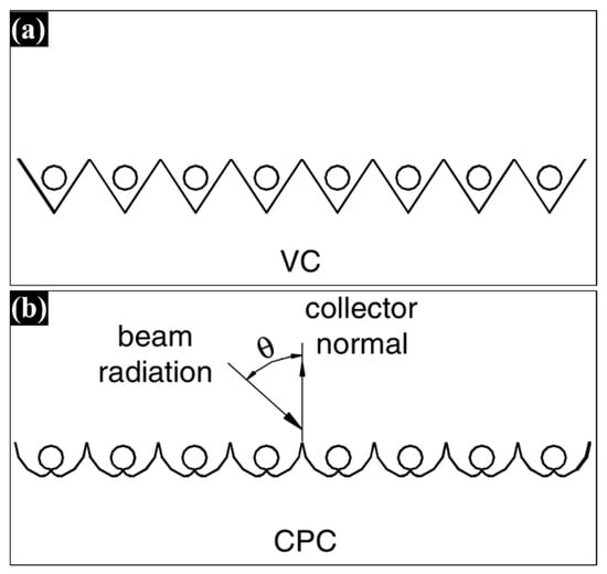 Cross sections of (a) V-groove and (b) compound parabolic collector-based photoreactors (adapted with permission from ref. [79]. Copyright 2004 Elsevier B.V.).