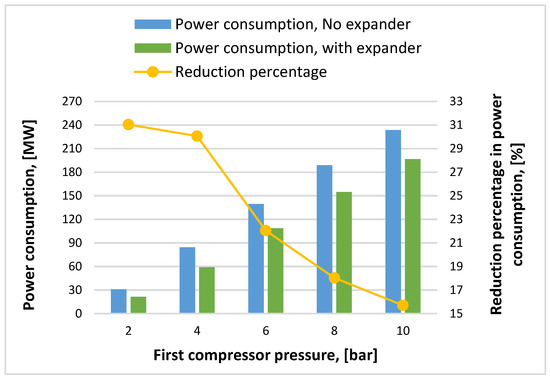 Jiayou et al. (2019) [32] carried out a gas recovery analysis to discuss the influence of flue gas pressure and carbon dioxide content on membrane CO2 capture in post-combustion CFPP. A spiral-wound membrane was used and optimized to decrease the total membrane surface and power consumption required by the membrane auxiliaries. The membrane designs of one and two units were evaluated with a flue gas of 22 kmol/s and 2.97 kmol/s CO2 flow. The authors declared that the power consumption for the proposed integration can be reduced by moderating the first compressor pressure from 5.5 to 6.5 bar. They also stated a reduction scenario for the CO2 recovery price by harnessing high carbon dioxide permeability together with medium selectivity for the membrane first unit, and suggested that medium permeability with high selectivity should be utilized for the second unit.