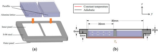 PCM possess numerous outstanding characteristics, such as high latent heat, low density, and sustained stability during phase transition [1,2,3,4,5]. Integrating PCM with structures like building walls and aircraft shells can significantly enhance the thermal sink capabilities of these structures [6,7,8]. This integrated approach enables the structures to regulate their internal temperature by storing and releasing solar energy when exposed to sunlight, thereby achieving temperature control and energy conservation.