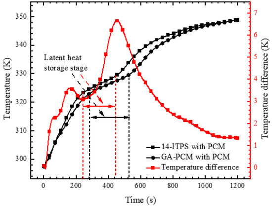 Comparison of temperature response between GA-ITPS with PCM and 14-ITPS with PCM.