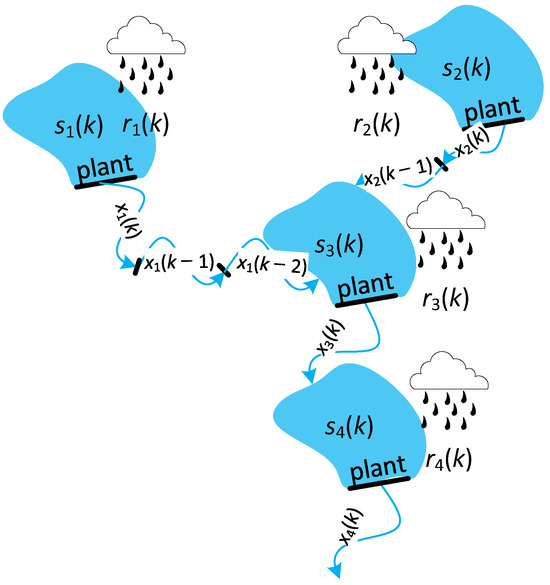 - r(k) = [r1(k) r2(k) … rn(k)]’ be the water volume from exogenous sources.