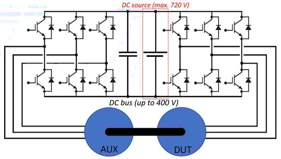 Motors are fed using the back-to-back inverters in Figure 2. Phase currents, voltages, speed, and temperatures are measured and stored. The operating conditions of the motors (control and modulation strategy of inverter feeding DUT machine, speed, and torque) vary from experiment to experiment, not being relevant to the contents of this paper. Most of the time the machines operate at rated load as this produces higher losses.