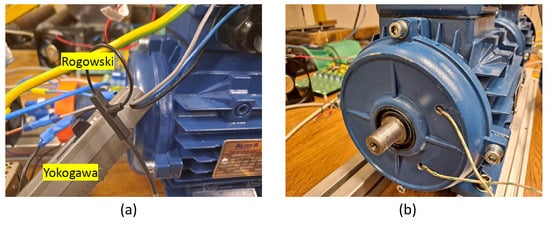 (a) Yokogawa Hall-effect and PEM Rogowski sensors. Both provide 50 MHz bandwidth and a maximum current of 30 A; (b) end-frame with the cables connected to two temperature sensors. Temperature sensors are attached to the end coils.