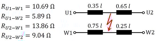 Measured resistances and estimated location of the fault between phases U and W in p.u. of winding length l.
