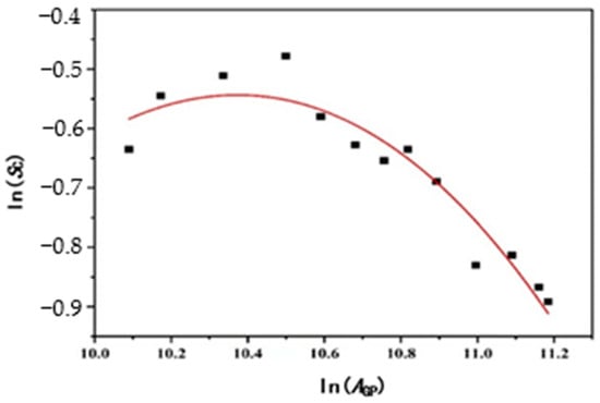 Drawing on the literature [27], this study compares the goodness of fit between the cubic function and cubic logarithmic function. The model demonstrating a higher degree of fitting is chosen as the EKC function model, confirming the EKC relationship between economic growth and electricity carbon emissions. Here, China’s AGp from 2008 to 2020 is used as a representative of the economic growth variables in the EKC model. Electricity carbon emission intensity SC is the rate of change of electricity carbon emissions relative to GDP. Referring to the EKC model between economy and environment, the three times AGp and SC that are the functional and cubic logarithmic functional analytical models can be expressed as Equations (4) and (5), respectively.