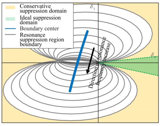 By calculating the center and radius change trajectory of the resonance suppression domain boundary within a certain frequency range, the distribution of the conservative/ideal suppression domain is clarified and used to guide resonance suppression strategy’s design.