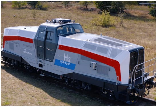 - SM41-6Dn Hydrogen. Available online: https://pesa.pl/produkty/lokomotywy/sm42-6dn-hydrogen/#desc (accessed on 7 August 2023).