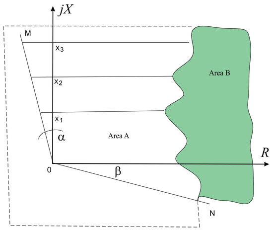 Area A and the reactance ranges are shaped by straight lines intersecting the X axis at points marking the distance protection grading zones, which is characteristic of most solutions currently found in PPA. In some cases, they can lean at a negative angle in the settings; it may also turn out to be necessary to introduce more straight lines, e.g., 6. However, area B, which varies from manufacturer to manufacturer, is shaped mainly due to the elimination of the influence of resistance, especially the arc or transition at the point of the short circuit.