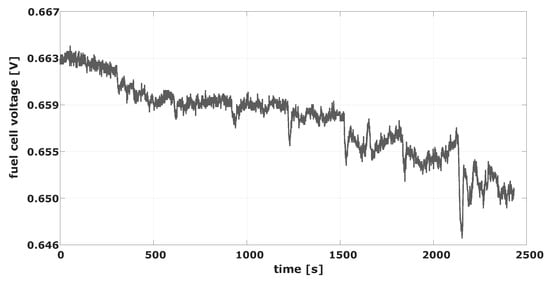 The hypothetical explanation for this phenomenon is that, depending on the value of other fundamental operating conditions such as the temperature of the fuel cell, the relative humidity of the inlet gasses and load current, internal hidden states, which define cell voltage, change in a hard-to-model, nonlinear manner.