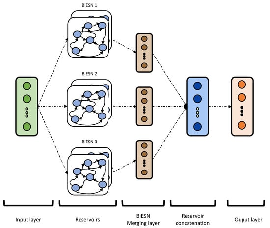- Bianchi, F.M.; Scardapane, S.; Løkse, S.; Jenssen, R. Bidirectional deep-readout echo state networks. arXiv 2017, arXiv:1711.06509. Available online: http://xxx.lanl.gov/abs/1711.06509 (accessed on 1 October 2023).