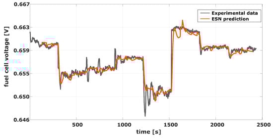 It is expected that the two phases shown in Figure 11, which correspond to the training and prediction period of the ESN, occur periodically during the fuel cell lifetime. This is due to the fact that, when facing completely new operating conditions or when the internal parameters of the fuel cell suffer large variations due to degradation (i.e., aging), the ESN needs to be re-trained.