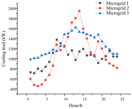 As shown in Figure 13, after the implementation of electricity sharing, there is a significant decrease in the electricity-driven cooling provided by the electric chiller compared to the period before electricity sharing. Simultaneously, there is a substantial increase in the absorption chiller’s operation. Microgrid 1’s cooling system consists mainly of an electric chiller and an absorption chiller. During the cooling process, the absorption chiller provides cooling during periods of relatively low thermal energy costs, while the electric chiller achieves cooling by consuming electricity. Considering their respective constraints and shared electricity, Microgrid 1 adjusts the operation of the two cooling devices to achieve a balance between cooling load and cooling capacity.