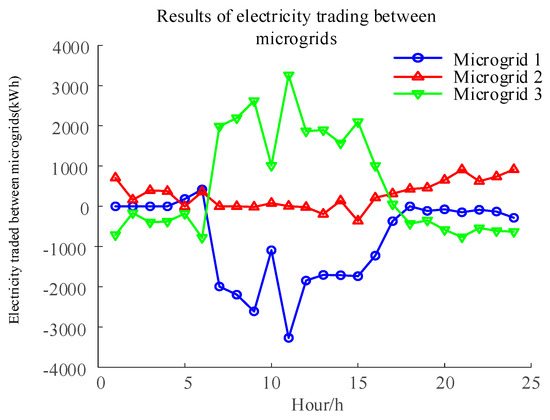 The results of energy transactions among Microgrid 1, Microgrid 2, and Microgrid 3 are illustrated in Figure 10. It is evident from the figure that the power of electricity transactions among the microgrids is in a real-time balanced state, achieving effective energy sharing and trading.