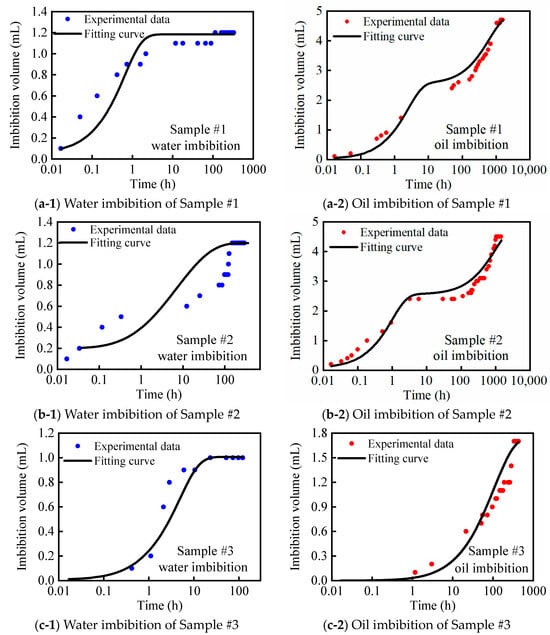 Fitting results of oil- and water-imbibition curves for the shale samples.