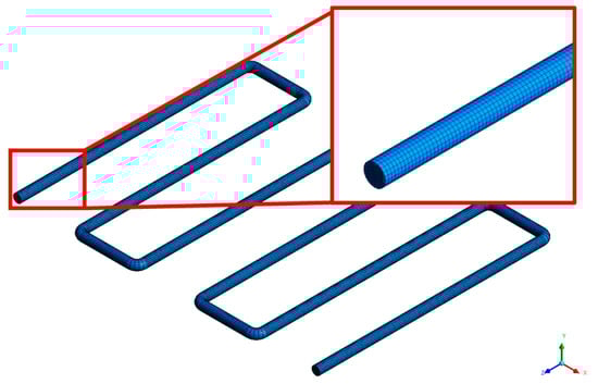 In the field of fluid dynamics, encompassing heat and mass transfer, chemical reactions, and related phenomena, computational fluid dynamics (CFD) stands as a numerical technique used for solving the governing mathematical equations. It enables the prediction of approximate solutions. Addressing challenges related to heat and mass transfer and fluid flow involves three main, traditionally employed approaches: analytical, experimental, and computational methods [,,,,]. For this study, Ansys Fluent was employed for modeling and analysis, thanks to a research-licensed version generously provided by King Mongkut’s University of Technology North Bangkok (KMUTNB).
