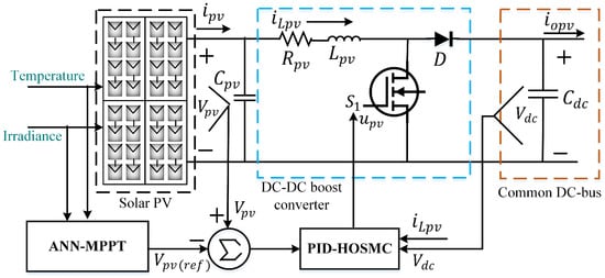 - A novel ANN-MPPT-based PID-HOSMC approach is proposed for a PV-dominant DC microgrid, designed using the nonlinear model with external disturbances and integrating a DPRL to effectively address the chattering issues inherent in conventional SMC methods.
